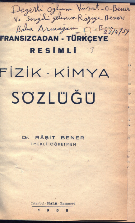 Raşit Bener - Fransızca'dan Türkçeye Resimli Fizik Kimya Sözlüğü